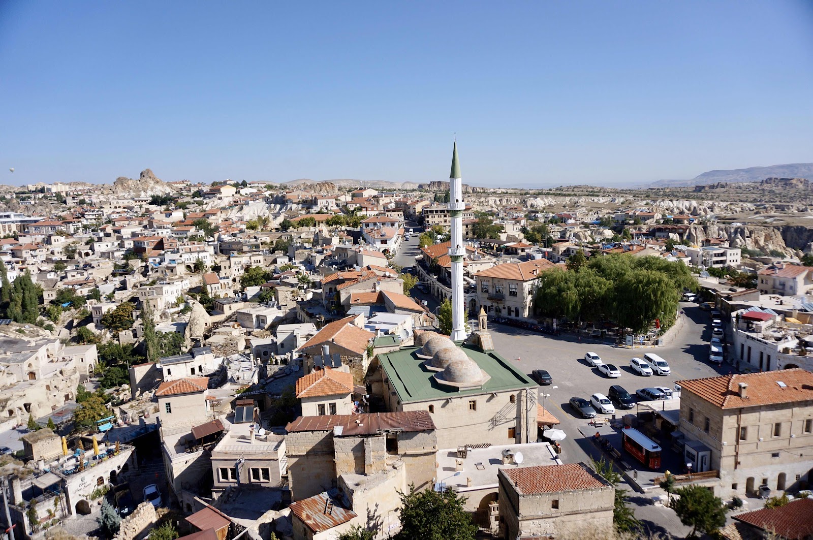 一根教拜塔的清真寺,成了小鎮的信仰中心,遠方還有一顆小小的熱氣球呢!